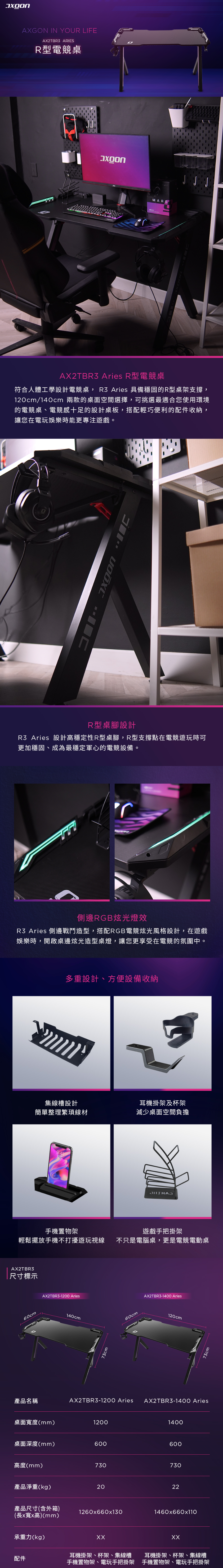 【贈品】AXGON AX2TBR3R型電競桌120CM
