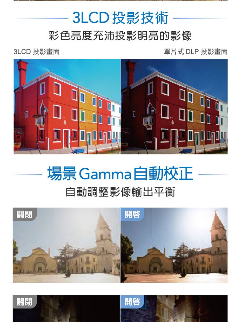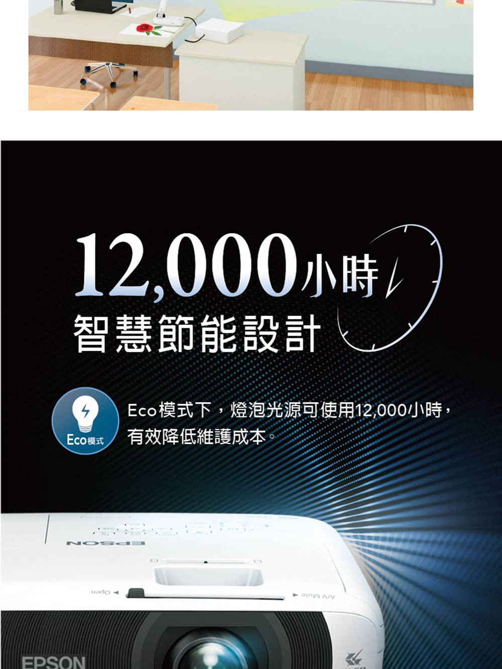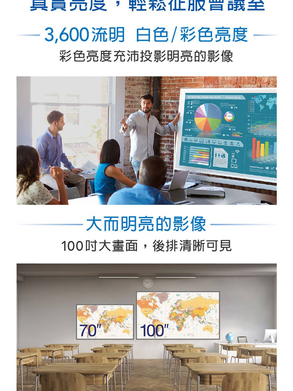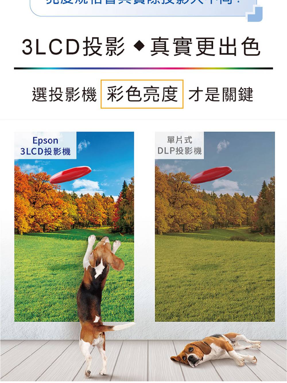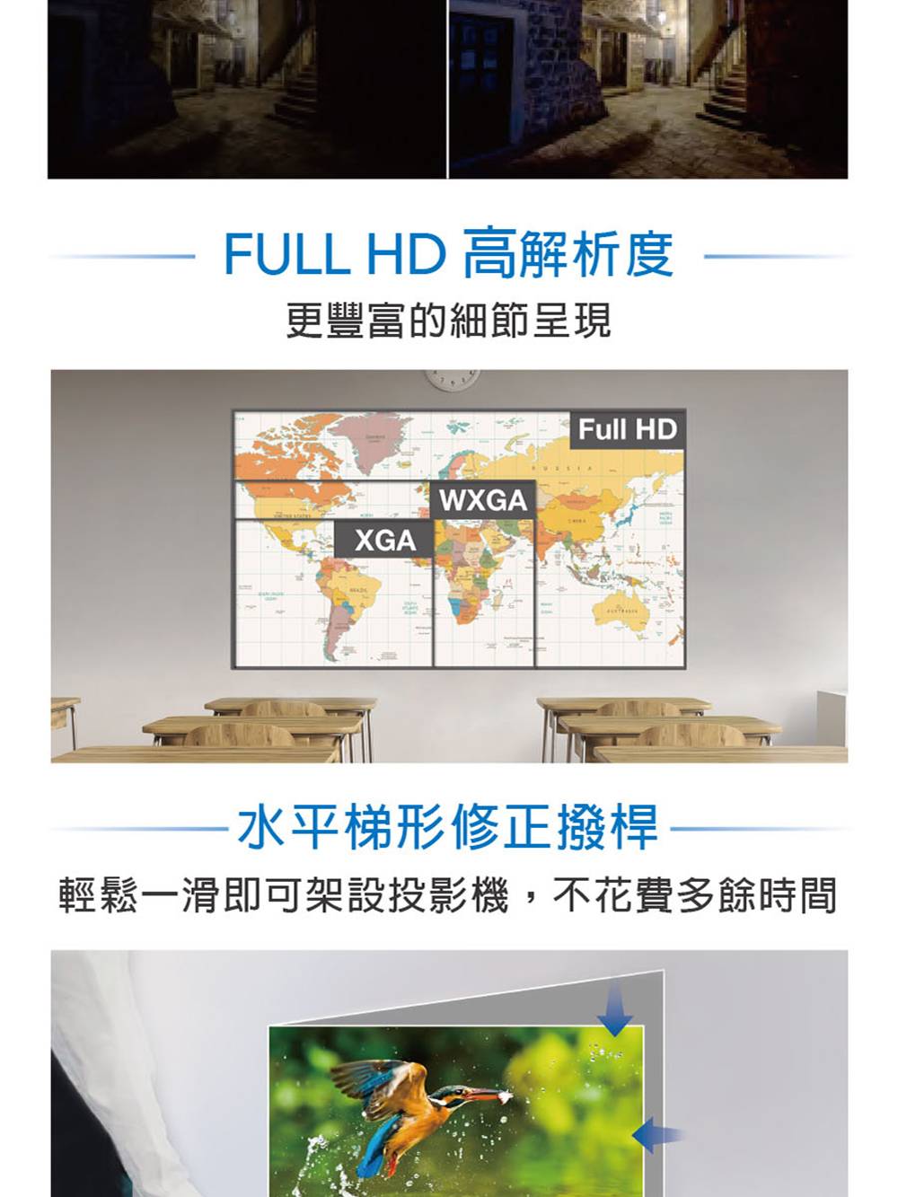 • 3倍彩色亮度,3600lm,開燈畫面一樣清晰