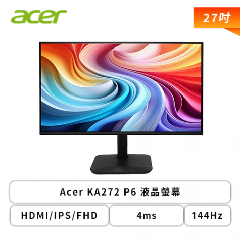【27型】Acer KA272 P6 液晶螢幕 (HDMI/IPS/FHD/4ms/144Hz/FreeSync/內建喇叭/三年保固)【福利品出清】