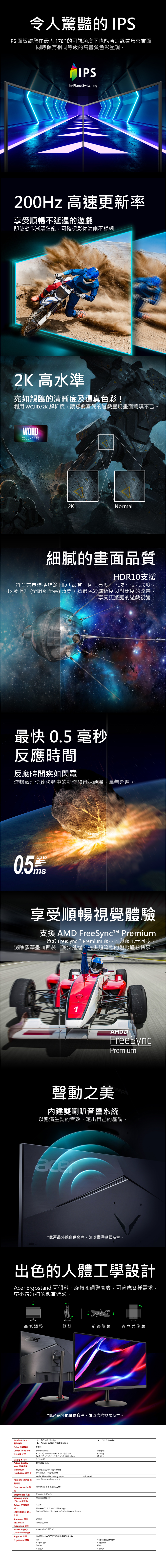 - 令人驚豔的IPS / 200Hz高速更新率 / 2K高水準