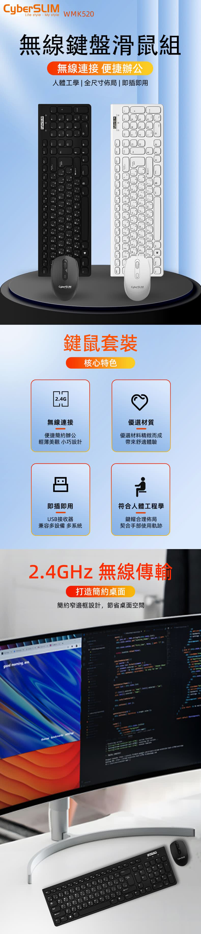 CyberSLIM WMK520 無線鍵盤滑鼠組 (白色)