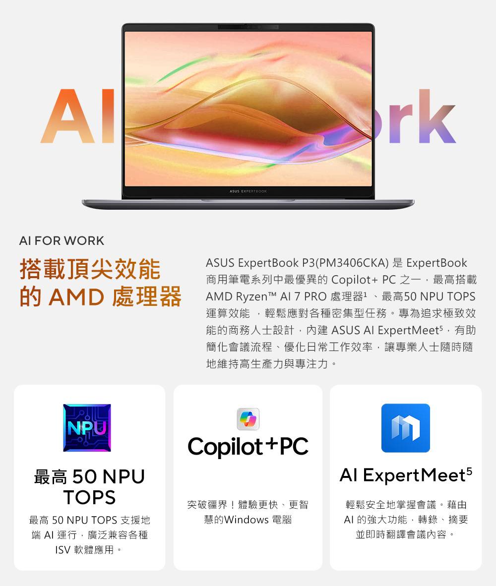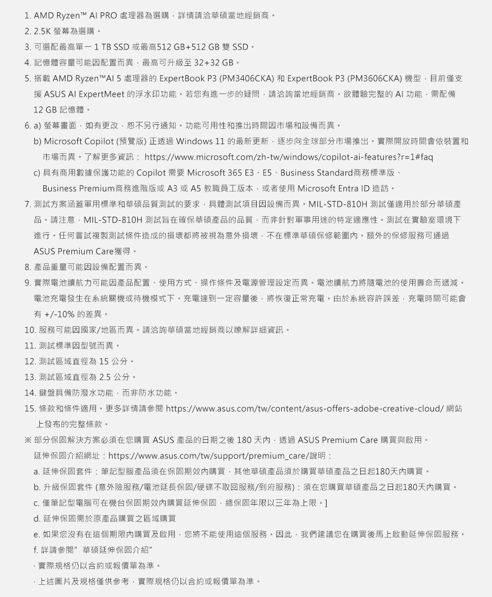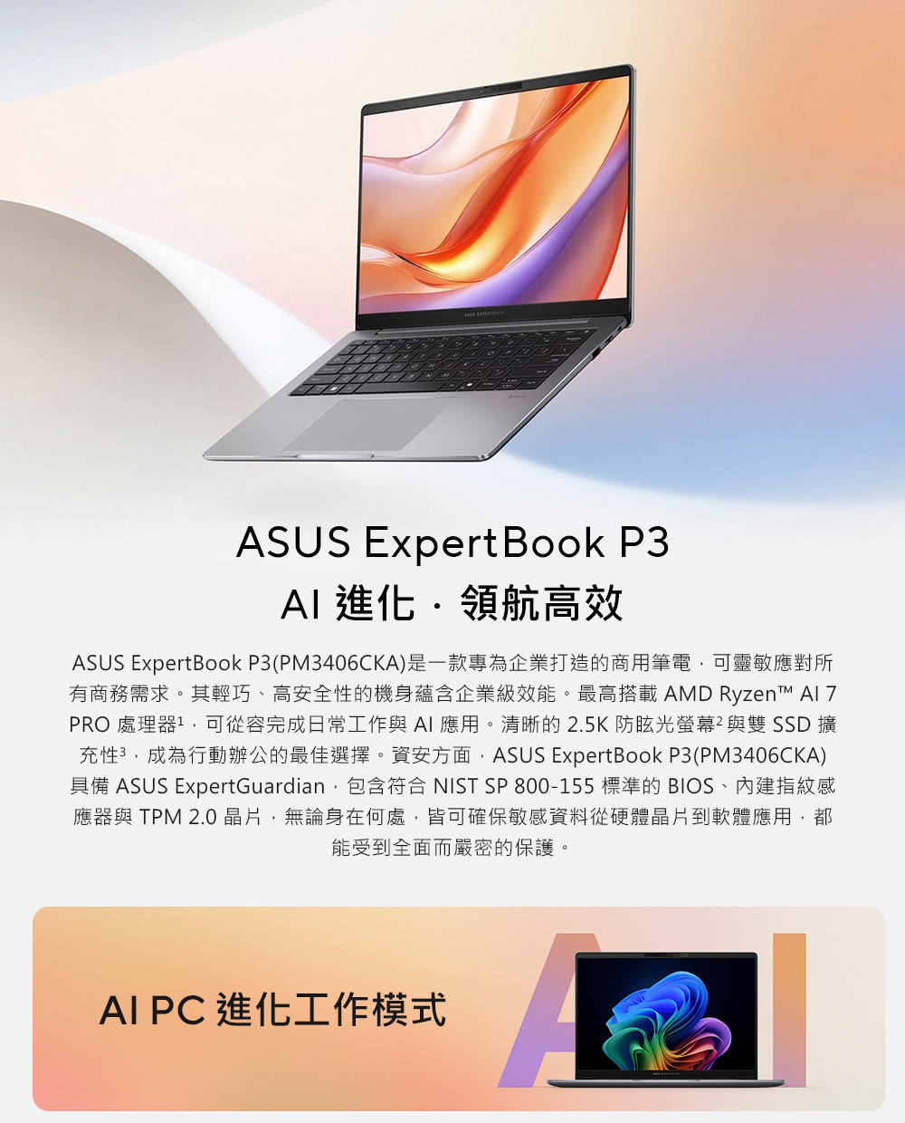 ASUS ExpertBook P3 華碩商用筆電/Ryzen AI 5 330/16G D5/1TB SSD/14吋 WQXGA/Win11 Pro/3年國際保+3年到府維修/PM3406CKA-0161A330