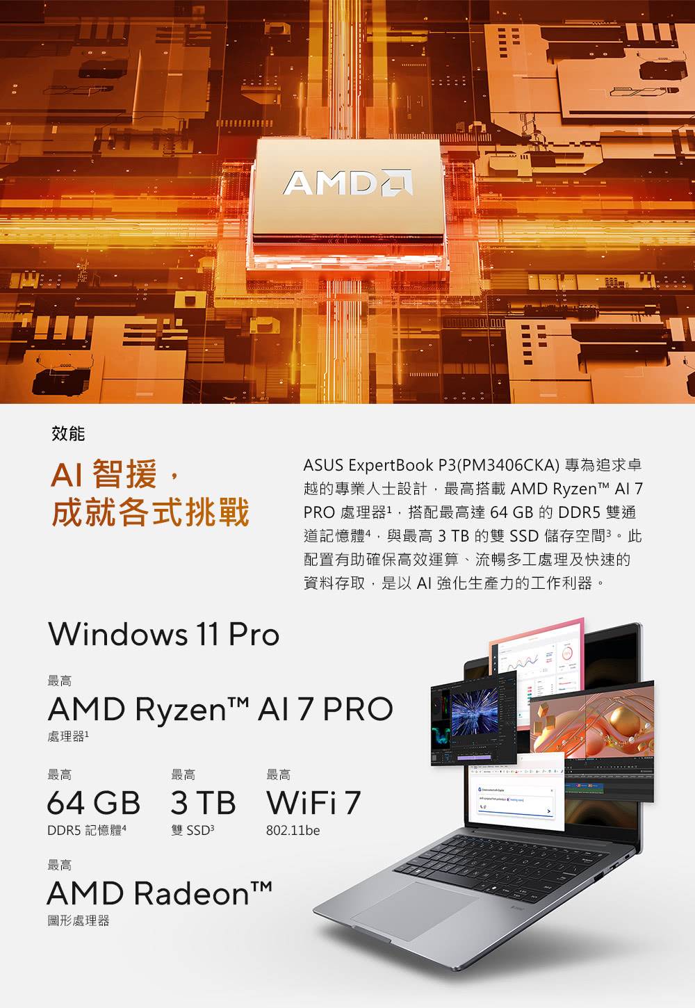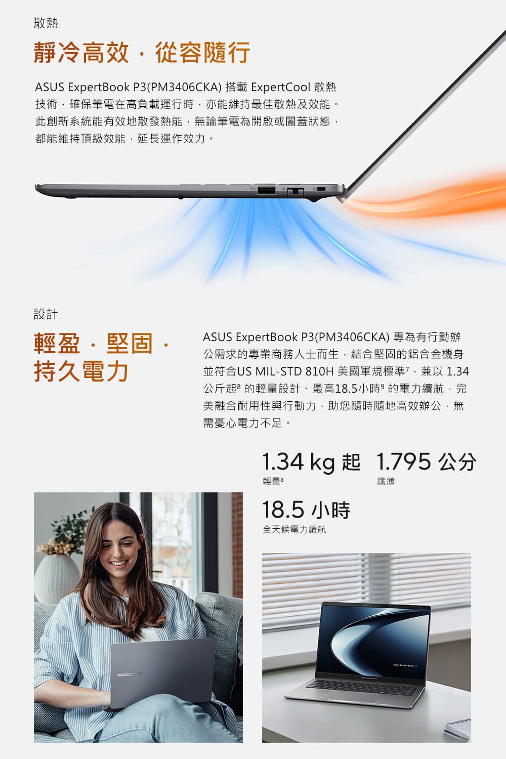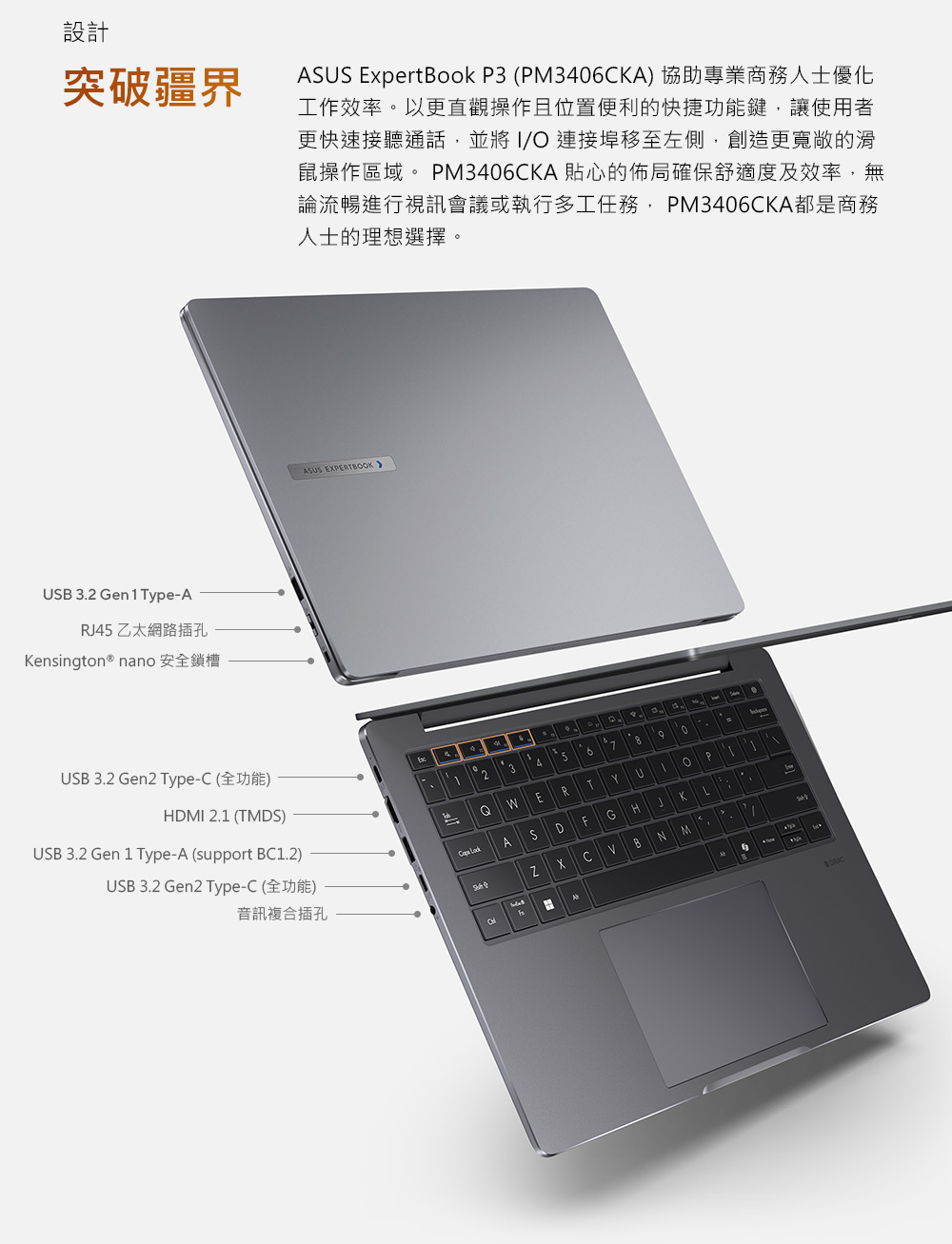 ASUS ExpertBook P3 華碩商用筆電/Ryzen AI 5 330/16G D5/1TB SSD/14吋 WQXGA/Win11 Pro/3年國際保+3年到府維修/PM3406CKA-0161A330