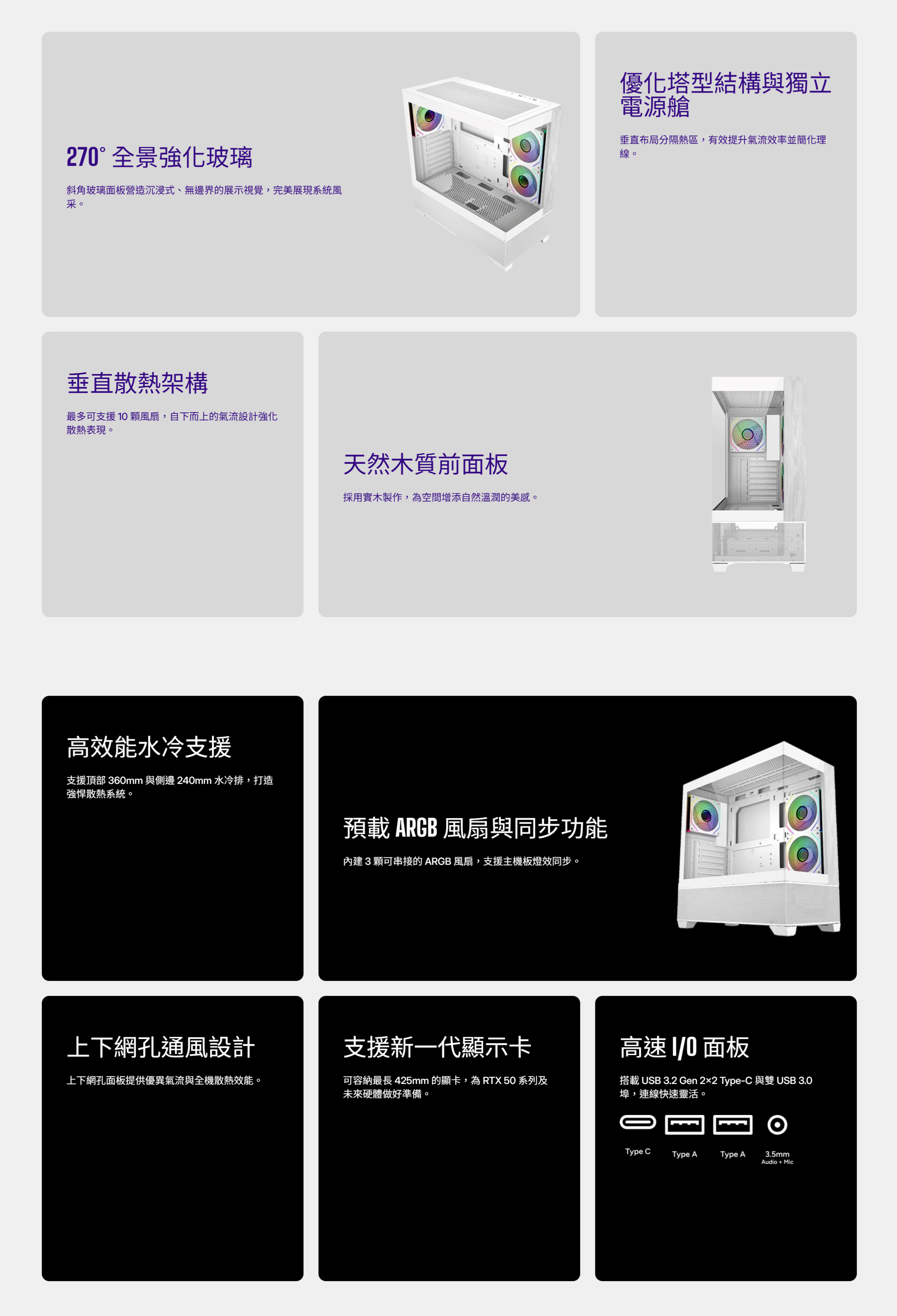▶支援頂部 360mm 與側邊 240mm 水冷排,打造強悍散熱系統