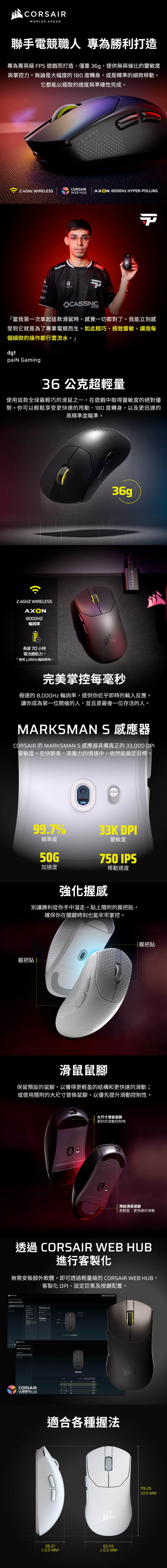 海盜船SABRE 聖劍 V2 Pro Ultralight RGB超輕量無線滑鼠【白】
