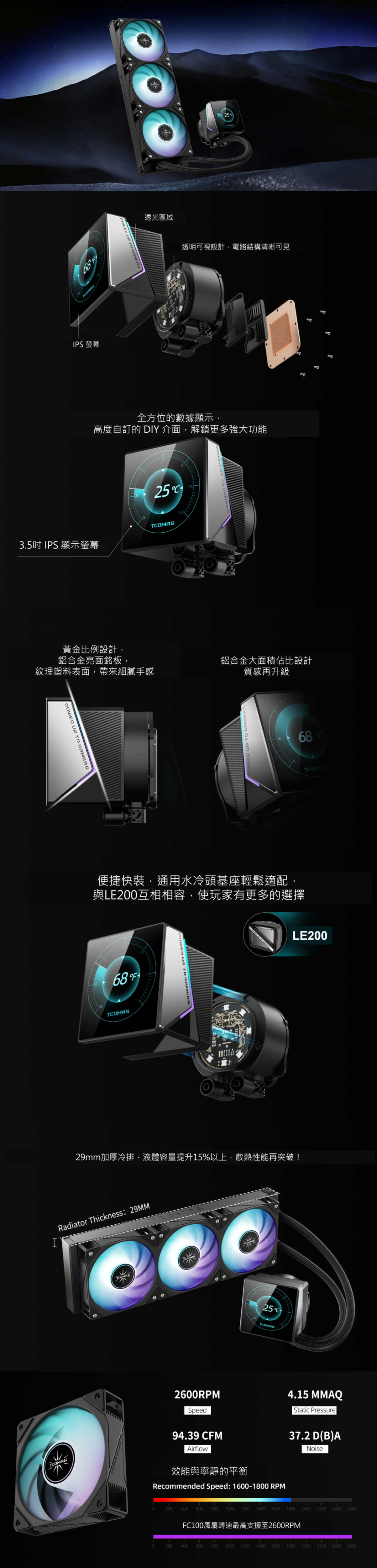 水冷頭材質(CPU接觸板):鋁、塑膠、玻璃