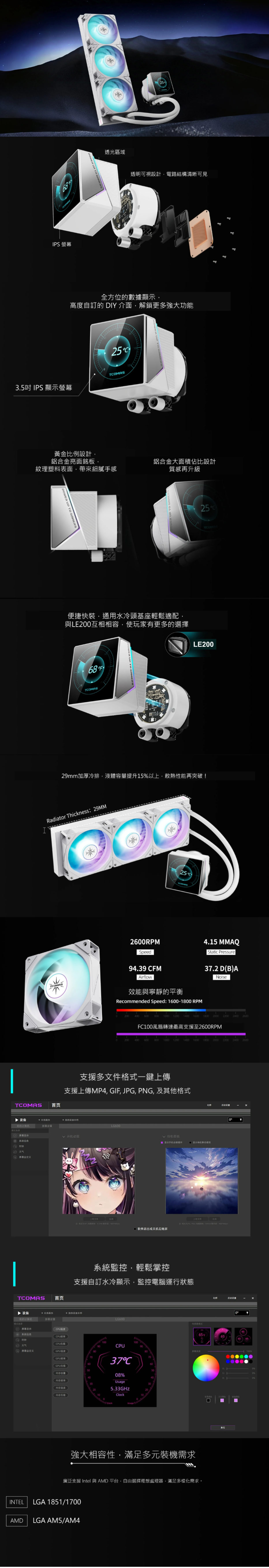 TCOMAS 鈦鉭 WG600 白 360水冷 (360mm/3.95″LCD水冷頭/加厚冷排風扇/ARGB燈光/12cm風扇*3/六年保)