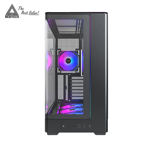 MONTECH KING 45 PRO 黑 全景玻璃機殼 (ATX/Type-C/內建風扇底3後1/曲面玻璃/ARGB燈光/斜角風扇設計/顯卡435mm/塔散187mm)