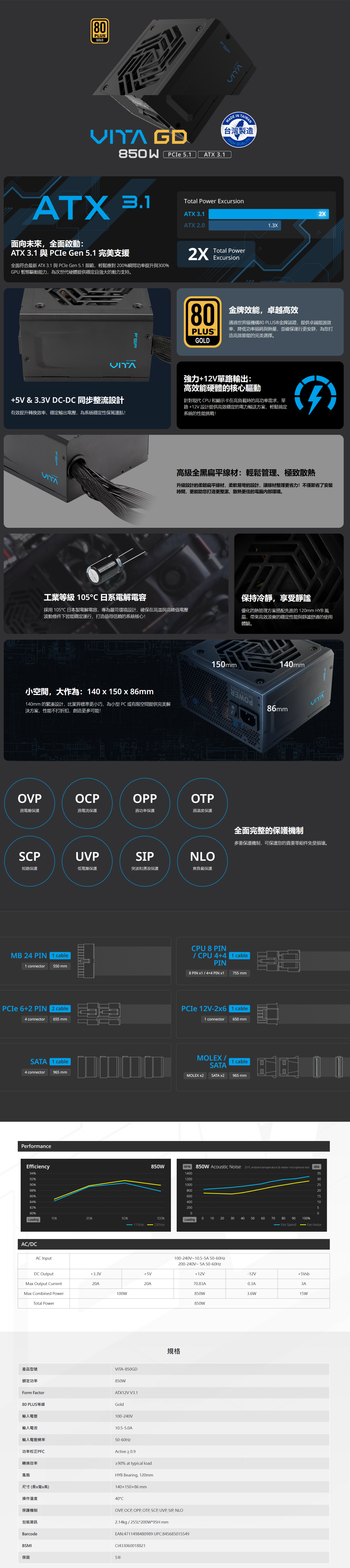 ▶全方位保護機制:OVP, OCP, OPP, OTP, SCP, UVP, SIP, NLO