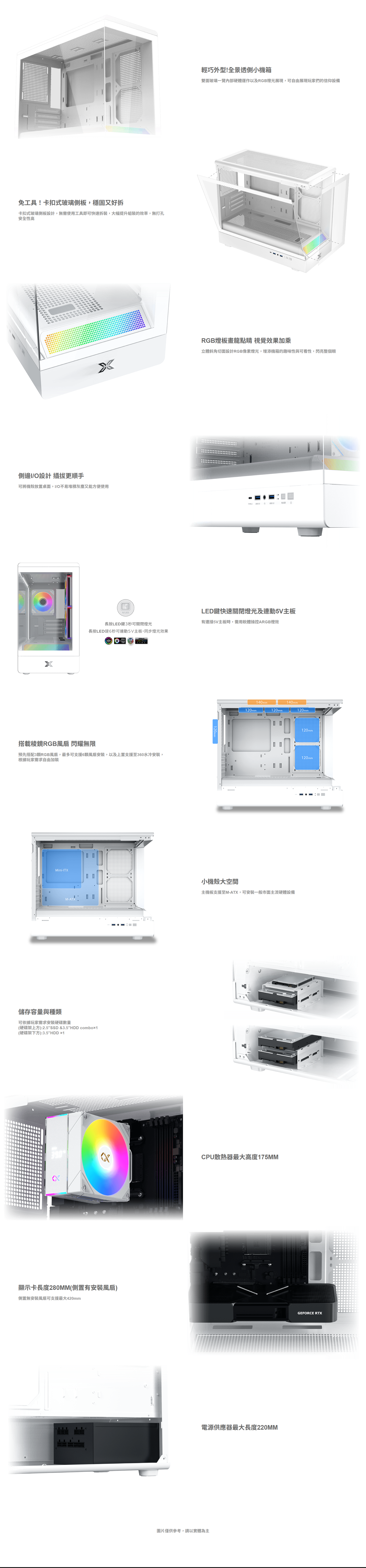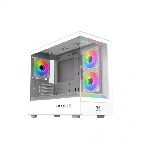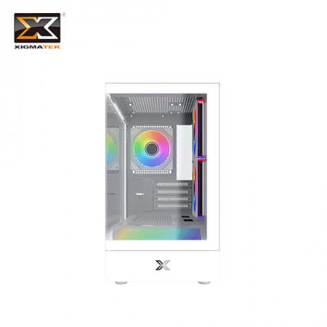 Xigmatek 富鈞科技 PURA ML Arctic 白 全景玻璃機殼 (M-ATX/Type-C/內建風扇側2後1/ARGB燈光/斜角切面RGB像素燈/顯卡280mm/塔散175mm)