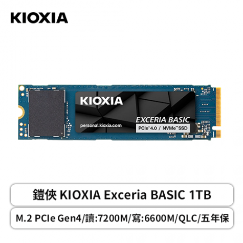 鎧俠 KIOXIA Exceria BASIC 1TB/M.2 PCIe Gen4/讀:7200M/寫:6600M/QLC/五年保