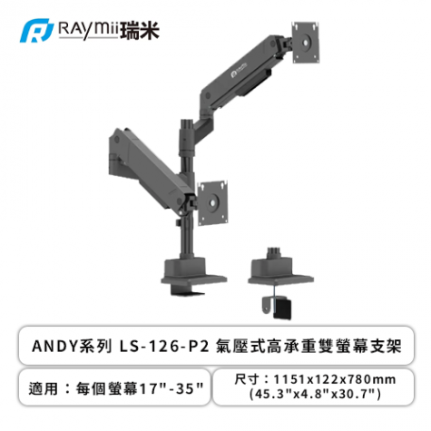 ANDY系列 Raymii LS-126-P2 氣壓式高承重雙螢幕支架 35吋 16KG 螢幕架 螢幕伸縮懸掛支架