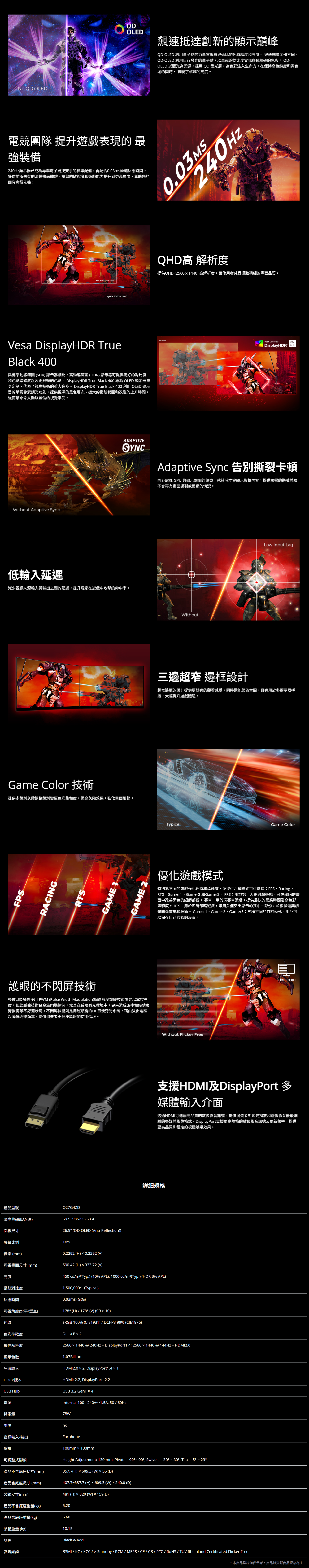 最佳解析度 2560 × 1440 @ 280Hz – DisplayPort1.4, HDMI2.1