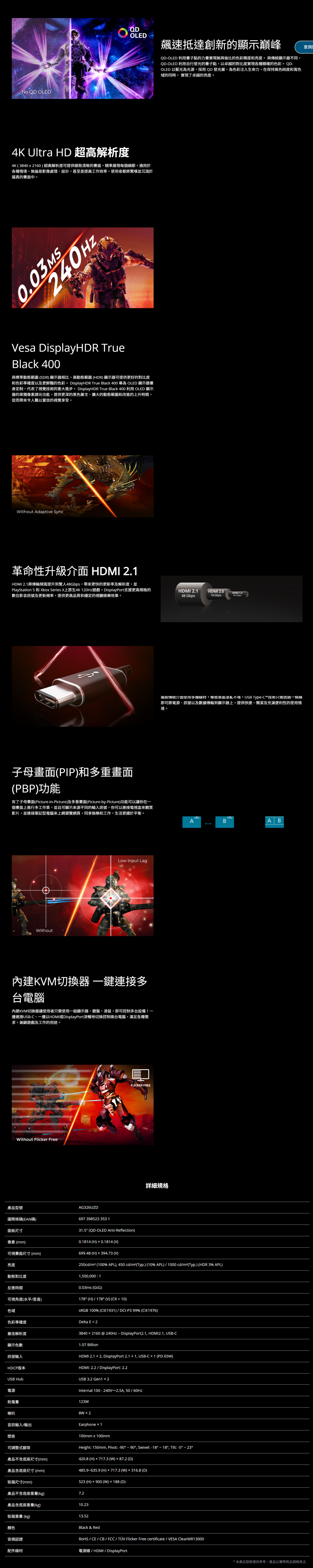 面板尺寸 31.5" (QD-OLED Anti-Reflection)