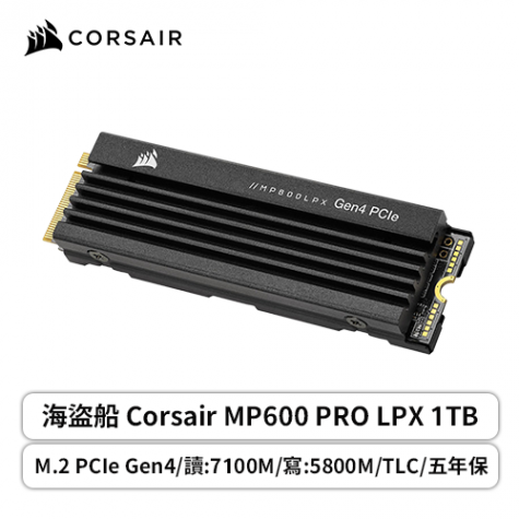 海盜船 Corsair MP600 PRO LPX 1TB/M.2 PCIe Gen4/讀:7100M/寫:5800M/TLC/五年保