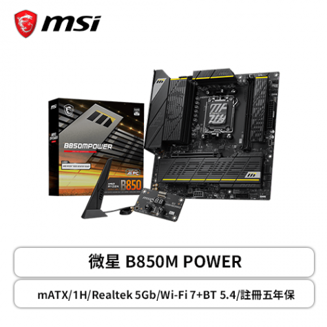微星 B850MPOWER (M-ATX/1H/Realtek 5Gb/Wi-Fi 7+BT 5.4/2xDIMM註冊五年保) 12+2+1相供電
