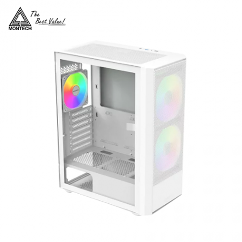 MONTECH X2 Plus 白 玻璃透側機殼 (ATX/Type-C/內建風扇前2後1/ARGB風扇/網孔面板/顯卡305mm/塔散160mm)
