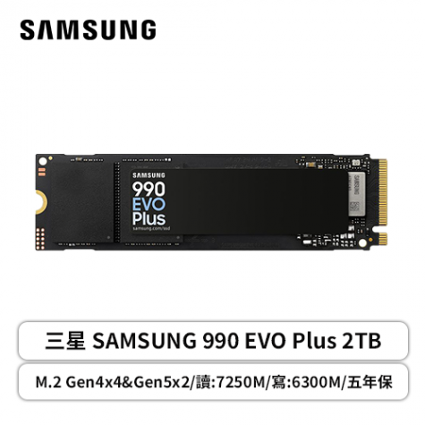 三星 SAMSUNG 990 EVO Plus 2TB/M.2 Gen4x4&Gen5x2/讀:7250M/寫:6300M/五年保
