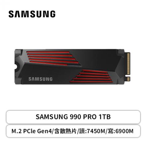 三星 SAMSUNG 990 PRO 1TB/M.2 PCle Gen4/含散熱片/讀:7450M/寫:6900M/五年保