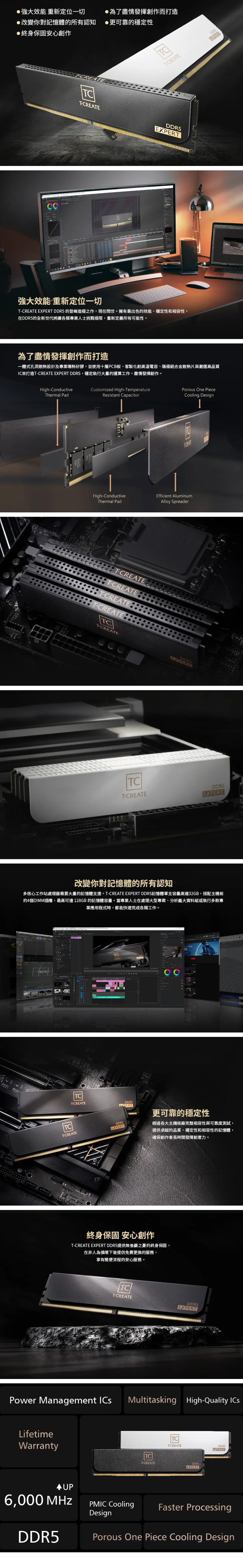 十銓 TEAM T-CREATE EXPERT DDR5-6400 128G(64G*2)-黑(CL42/支援XMP&EXPO)