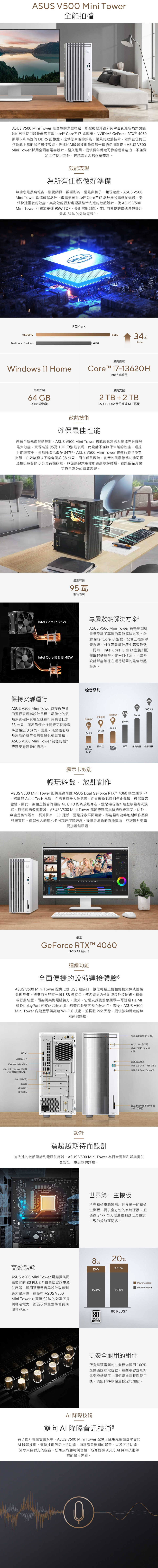 華碩 ASUS H-V500MV-13420H0430 白 桌上型電腦 (I5-13420/8GB DDR5/512GB SSD/330W/NON-OS/三年保固)