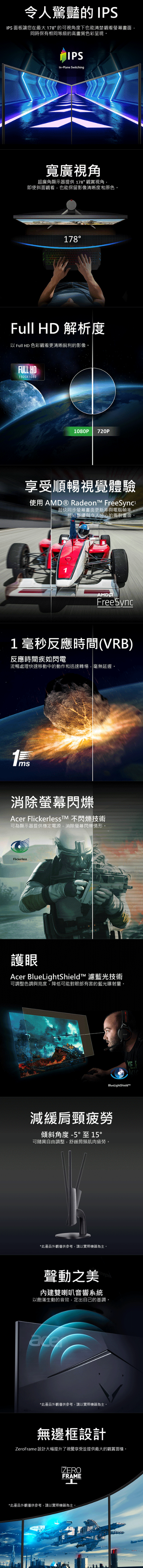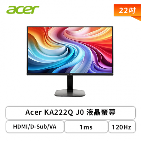 【22型】Acer KA222Q J0 液晶螢幕 (HDMI/D-Sub/VA/1ms/120Hz/FreeSync/低藍光/不閃屏/內建喇叭/三年保固)