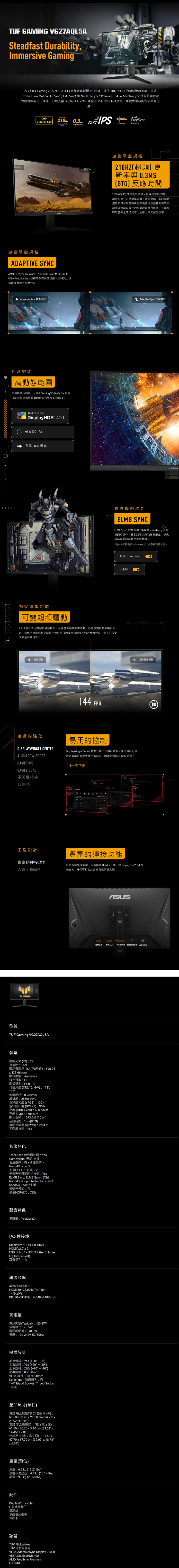 - ASUS Fast IPS 技術帶來 0.3ms (GTG) 反應時間 (最小值),以高畫面播放速率提供清晰的遊戲視覺效果