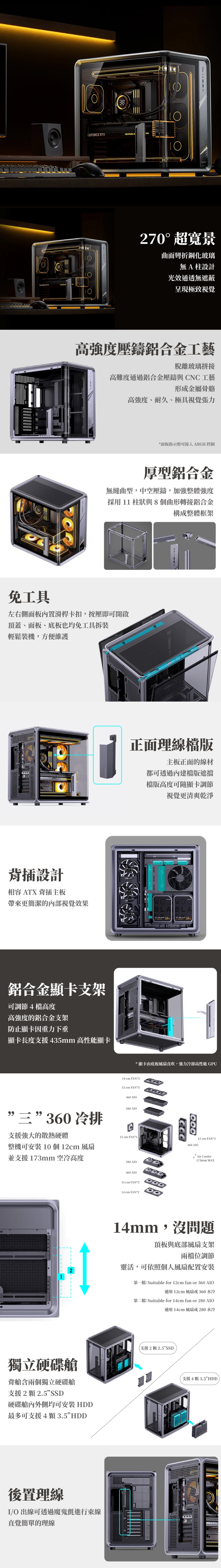 JONSBO 喬思伯 BO400CG 全景玻璃機殼 (ATX/Type-C/曲面環景強化玻璃/無A柱/雙艙設計/鋁合金框架/支援背插主板/內附顯卡支架/顯卡435mm/塔散173mm)