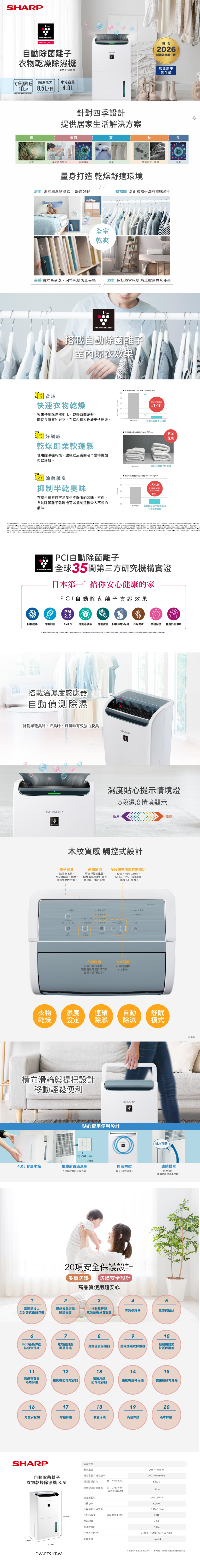- 衣物乾燥/手動濕度設定/連續除濕/自動除濕四種模式,並新增舒眠模式