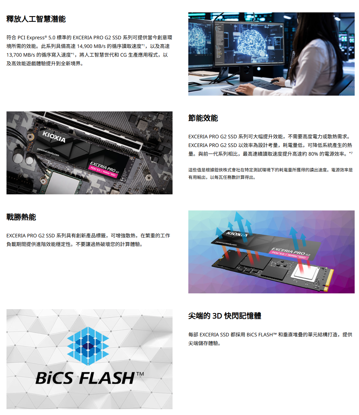 鎧俠 KIOXIA EXCERIA Pro G2 2TB/M.2 PCIe Gen5/讀:14900M/寫:13400M/TLC/五年保
