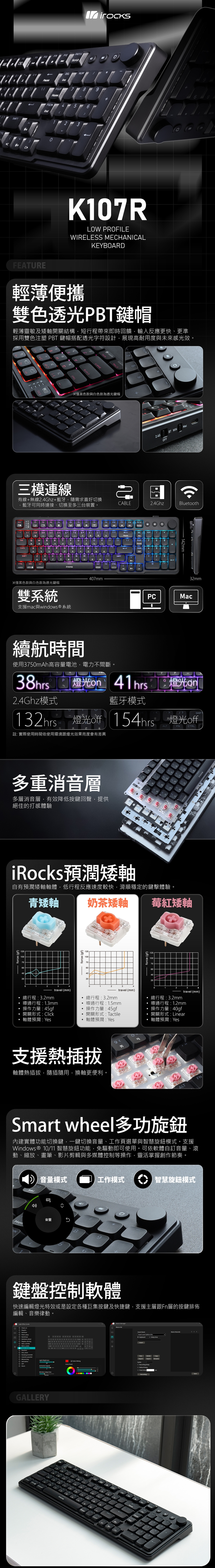 K107R 熱插拔三模無線矮軸機械鍵盤-黑色 (紅軸)