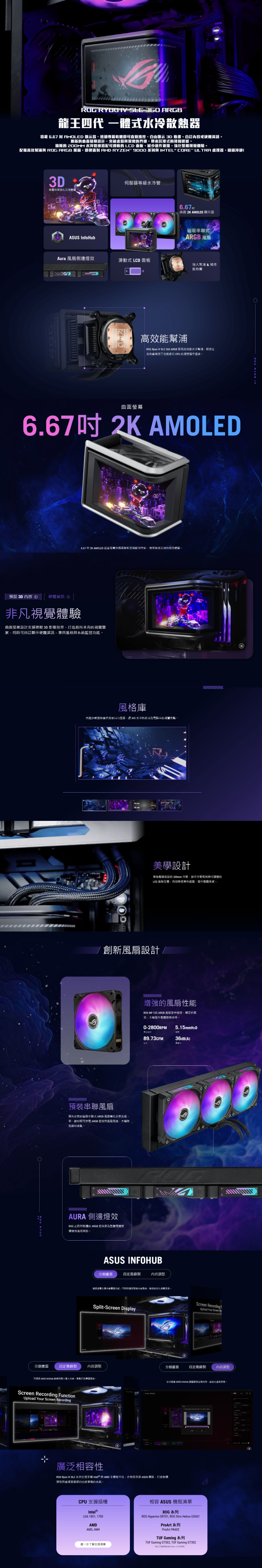 欲變更螢幕影片/圖片/監控硬體,需下載ASUS Info hub軟體,AURA SYNC則使用Armoury Crate)