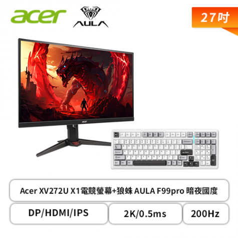 【破盤價】【27型】Acer XV272U X1電競螢幕 (DP/HDMI/IPS/2K/0.5ms/200Hz/HDR400/FreeSync Premium/內建喇叭/三年保固)+狼蛛 AULA F99pro 暗夜國度(淺灰+白+深灰)