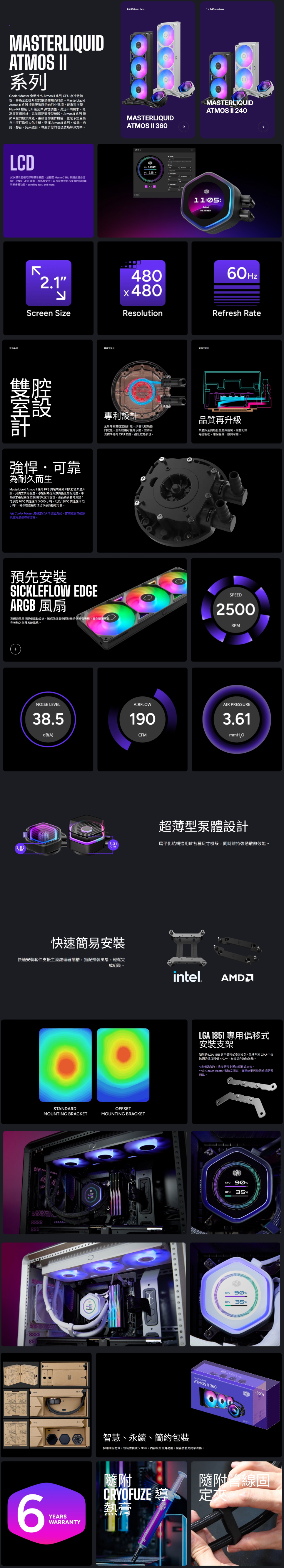酷碼 MasterLiquid 360 Atmos II LCD ARGB 黑 (360mm/2.1″LCD水冷頭/自訂面板內容/雙腔室設計/預裝一體式風扇/六年保)