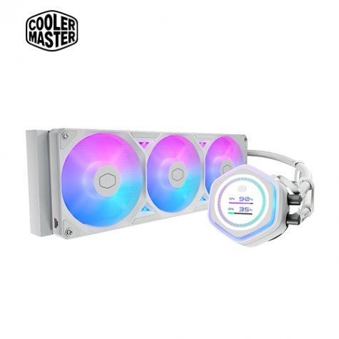 酷碼 MasterLiquid 360 Atmos II LCD ARGB 白 (360mm/2.1″LCD水冷頭/自訂面板內容/雙腔室設計/預裝一體式風扇/六年保)