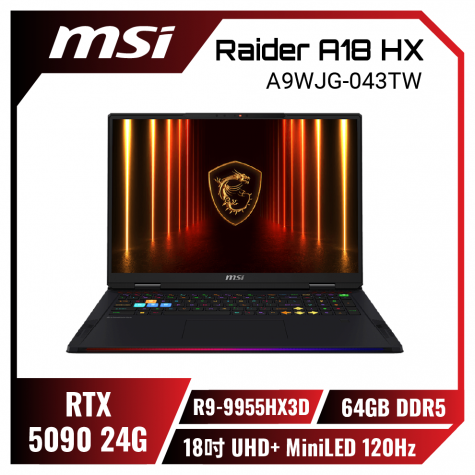 - 18吋UHD+ (3840x2400), 16:10, MiniLED, 120Hz更新率, 100% DCI-P3, VESA DisplayHDR™ 1000 認證, IPS等級面板