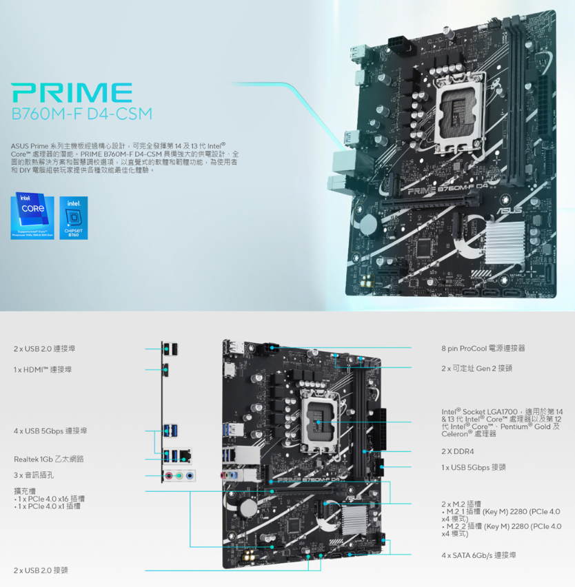▶Intel® LGA 1700 插槽:支援第 14、13 及 12 代 Intel® 處理器