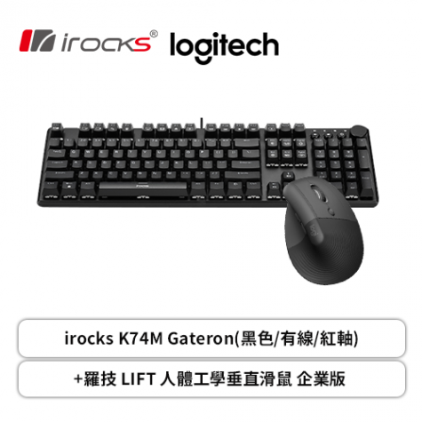 irocks K74M Gateron(黑色/有線/紅軸)+羅技 LIFT 人體工學垂直滑鼠 企業版
