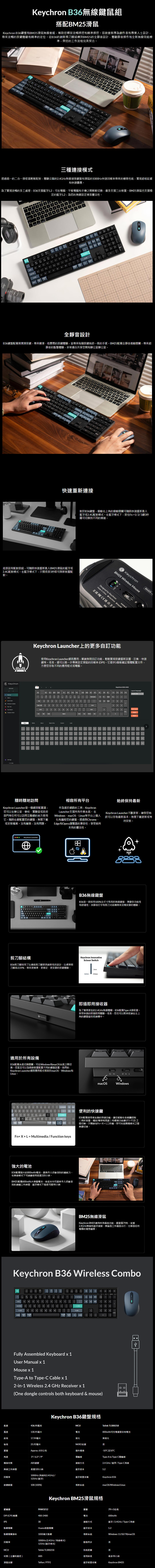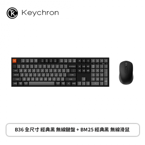 keychron B36 全尺寸 經典黑 無線鍵盤 Mac/Win 注音版本 + BM25 經典黑 無線滑鼠 Mac/Win