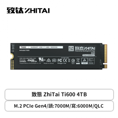 致態 ZhiTai Ti600 4TB/M.2 PCIe Gen4/讀:7000M/寫:6000M/QLC/五年保