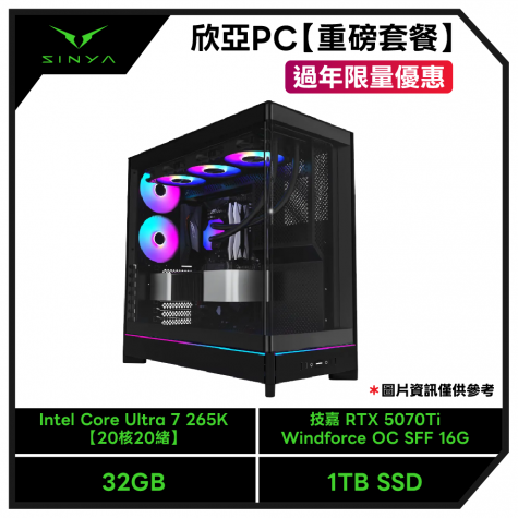 【重磅套餐-過年限量優惠】Intel Core Ultra 7 265K【20核20緒】+技嘉 Z890 AORUS ELITE WIFI7+美光 Crucial PRO DDR5-6000 32G(16G*2)(黑散熱片/CL36)+美光 Crucial T500 1TB+技嘉 RTX 5070Ti WINDFORCE OC SFF 16G+MONTECH NX600 ARGB+XPG 威剛 CORE REACTOR II 850W+MONTECH HS02 PRO 黑 全景玻璃機殼+狼蛛 F108pro