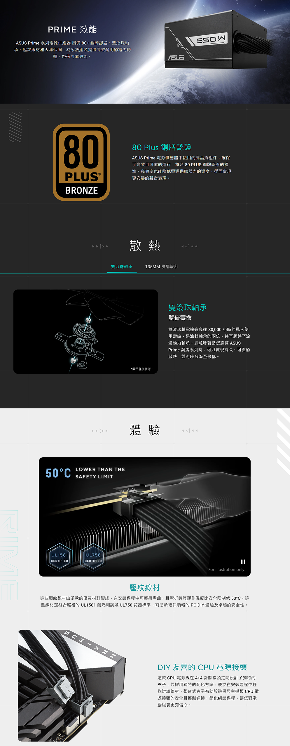 208502【華碩 Prime 550W (80+銅牌/ATX/雙滾珠風扇/壓紋線材/直出/六年保固)】