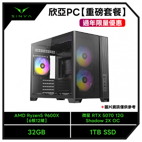 【重磅套餐-過年限量優惠】AMD Ryzen5 9600X【6核12緒】+微星 B850M GAMING WIFI+威剛 XPG LANCER BLADE DDR5-6000 32G(16G*2) (矮版散熱片)-黑(CL30)+威剛 ADATA XPG S70 BLADE 1TB+微星 RTX 5070 12G SHADOW 2X OC+MONTECH NX600 ARGB+MONTECH Century II 850W+Antec 安鈦克 FLUX M 玻璃透側機殼