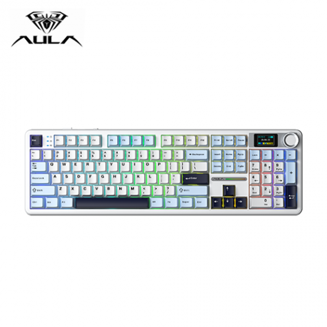 215682【狼蛛 AULA F108pro (淺藍+白+黑紫 ) (收割者軸-繁中) ❰三模❱】