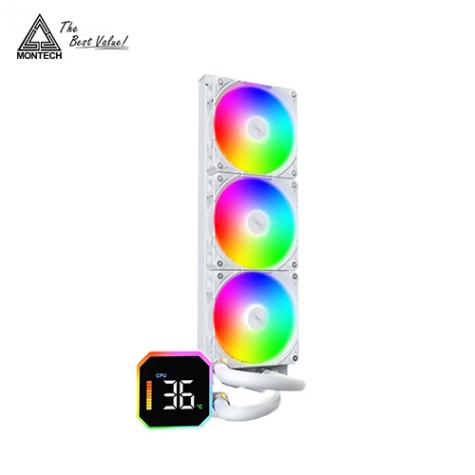 218474【MONTECH HyperFlow Digital 360 白 (3600mm/預安裝設計/ARGB燈光/內建數位顯示器/12cm風扇*3/六年保固)】