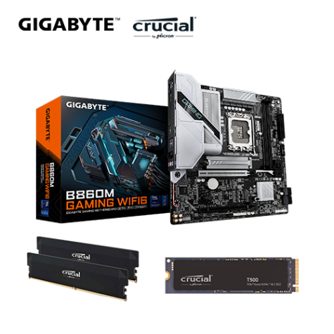 【重磅價】技嘉 B860M GAMING WIFI6+美光 Crucial PRO DDR5-6000 32G(16G*2)-黑(CL36)+美光 Crucial T500 1TB