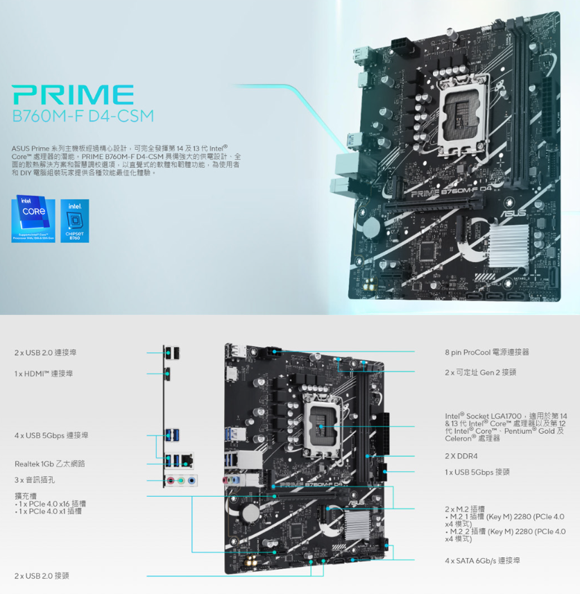 ▶Intel® LGA 1700 插槽:支援第 14、13 及 12 代 Intel® 處理器