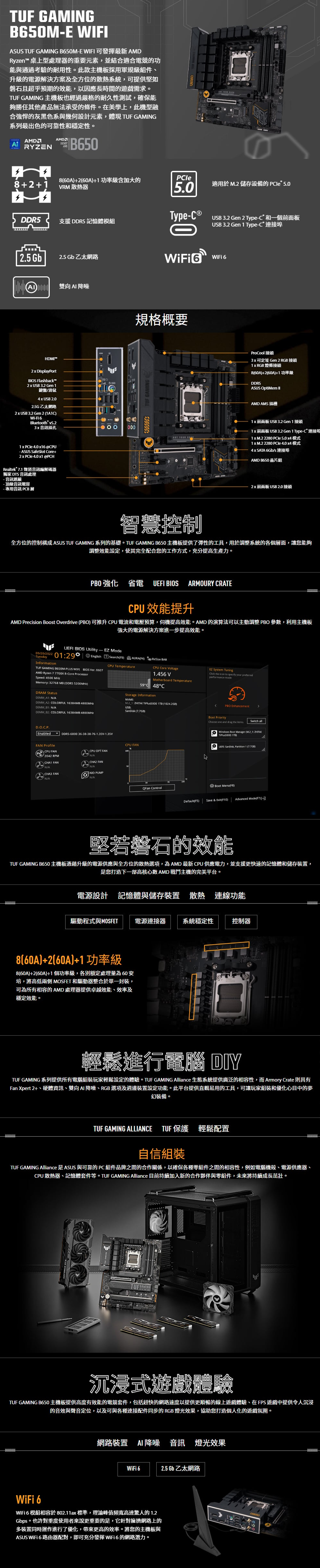 ▶支援PCIe5.0 M.2、8+2相 60A DRMOS,搭配大型散熱片,同級溫度表現最佳