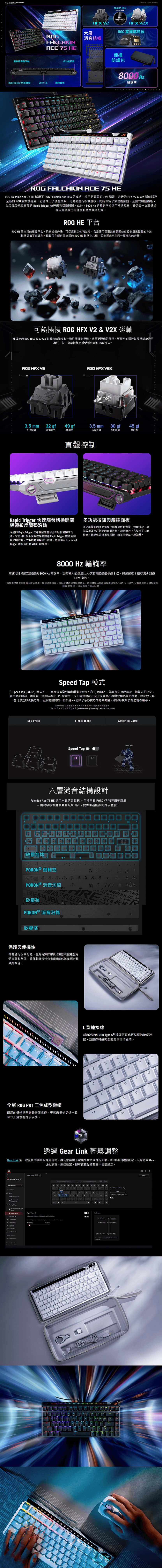 華碩 ASUS ROG Falchion Ace 75 HE 磁軸電競鍵盤 (白色)