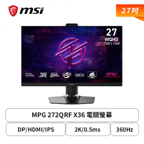 【27型】MSI MPG 272QRF X36 電競螢幕 (DP/HDMI/IPS/2K/0.5ms/360Hz/G-SYNC Pulsar/HDR 10/可升降/可旋轉升降/無喇叭/三年保固)